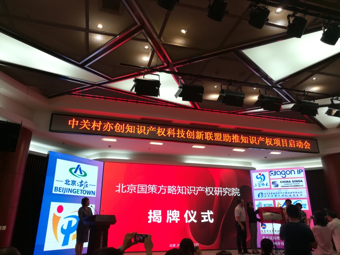 會(huì )議進(jìn)行第三階段,舉行了北京國策方略知識產(chǎn)權研究院揭牌儀式并且院長(cháng)發(fā)表講話(huà)。北京國策方略知識產(chǎn)權研究院是由北京市知識產(chǎn)權局作為業(yè)務(wù)主管單位,經(jīng)北京市民政局批準成立的民辦非企業(yè)的非營(yíng)利性社會(huì )組織。研究院的宗旨是“服務(wù)企業(yè)創(chuàng )新發(fā)展,聚集知識產(chǎn)權資源,構建保護服務(wù)體系,建立知識產(chǎn)權投融資新模式、打造知識產(chǎn)權支撐創(chuàng )新技術(shù)產(chǎn)業(yè)化服務(wù)新鏈條”。