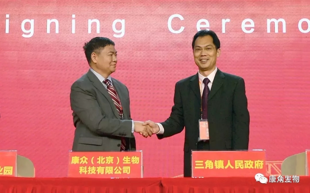 ★在今天的“3·28”經(jīng)貿招商中,三角鎮黨委書(shū)記黃澤科代表三角鎮人民政府與康眾(北京)生物科技有限公司進(jìn)行簽約。